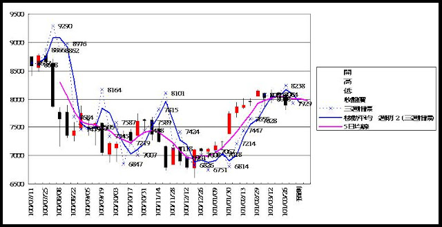高低點震盪預測+/-誤差大於75點或與前日變化大表示進入盤整或新趨勢