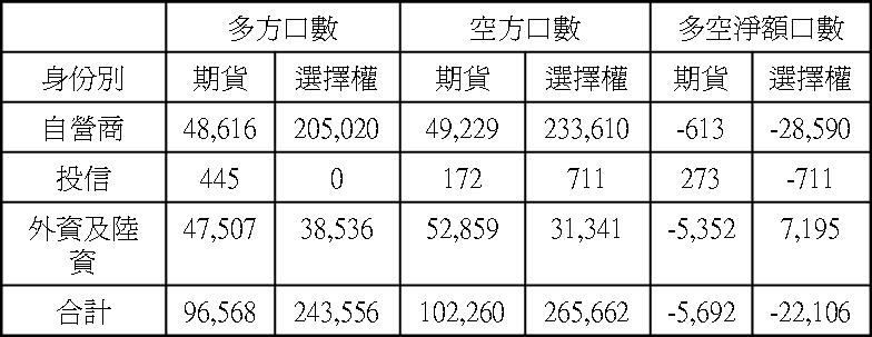 期貨未平倉部位外資仍握有大筆空單