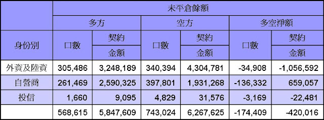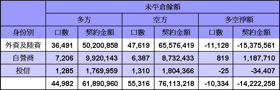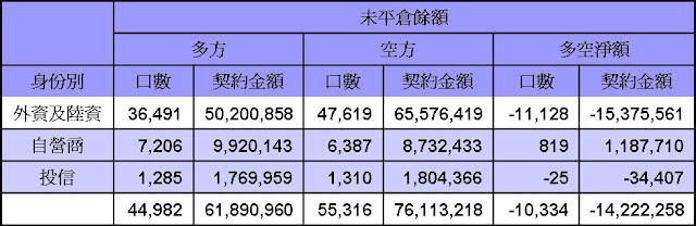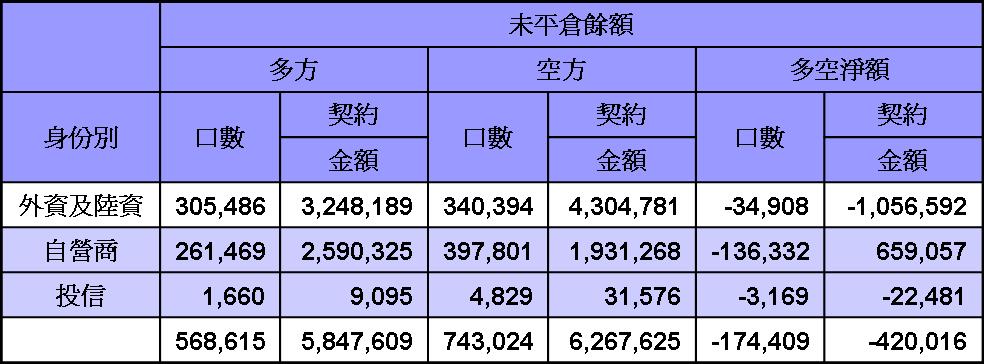 台股期貨及台指選擇權平倉部位外資仍握有大筆空單