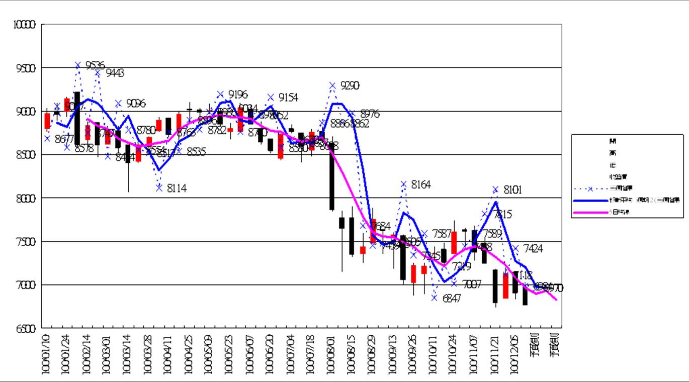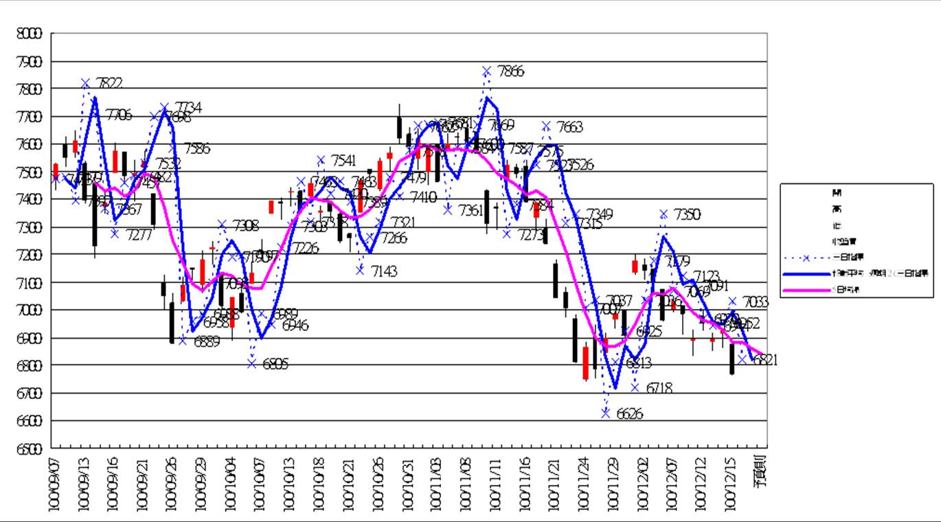 大盤日線20111215 大盤週線20111215 大盤月線20111215 台股期貨未平倉20111215 台指選擇權未平倉20111215 藍色虛線為指標 藍色實線為指標的移動平均線(週期2) 粉色實線為5(日,週,月)平均線 目前週線跌破指標和5週均線 月線跌破指標和5月均線 日線跌破指標和5日均線 台股期貨及台指選擇權平倉部位外資仍握有大筆空單 現貨部份三大法人合計賣超74.31億 長線空頭尚未結束 指數下殺探底 破底是遲早的事