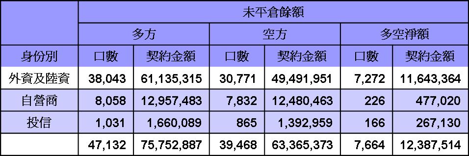 台股期貨未平倉20120319