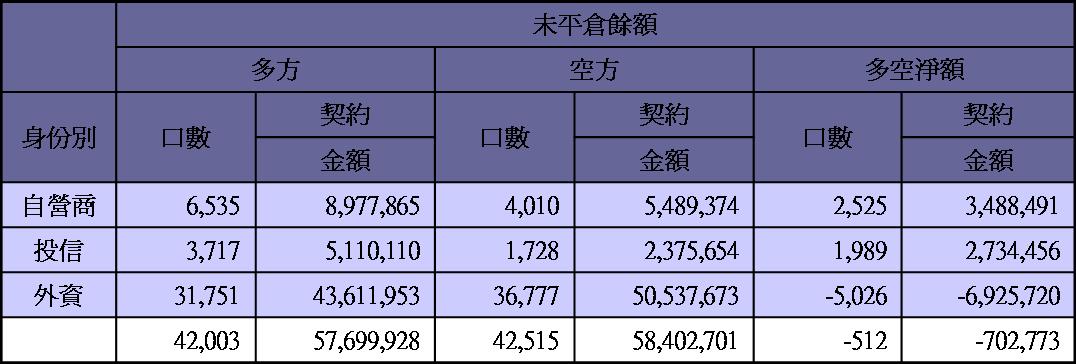台股期貨未平倉20120724