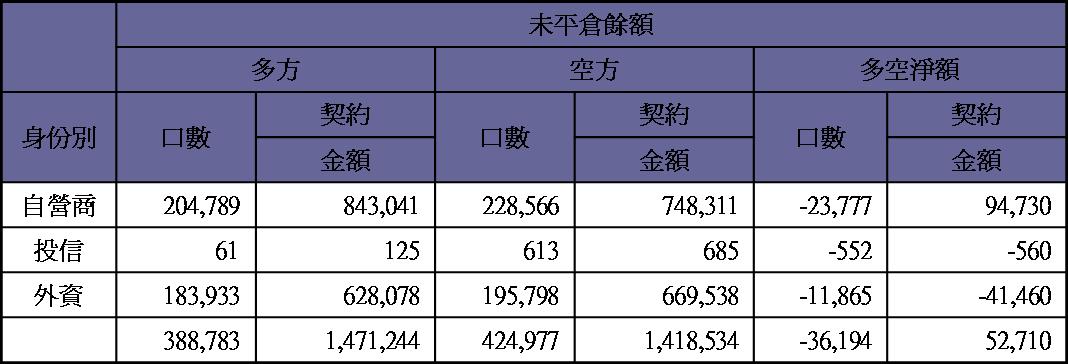 期貨未平倉量多單水位急降至4000多口