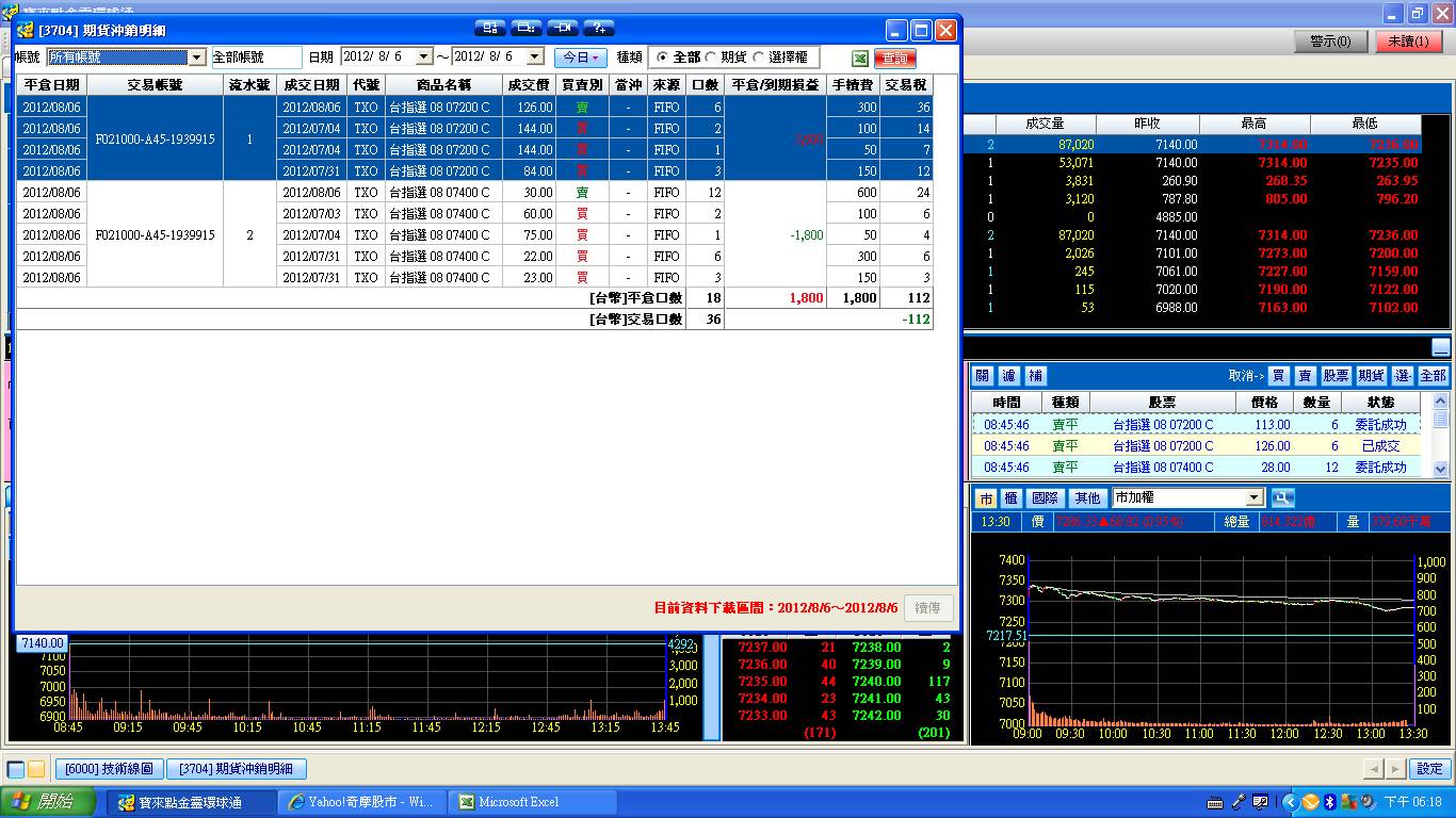 台指選擇權未平倉20120806
