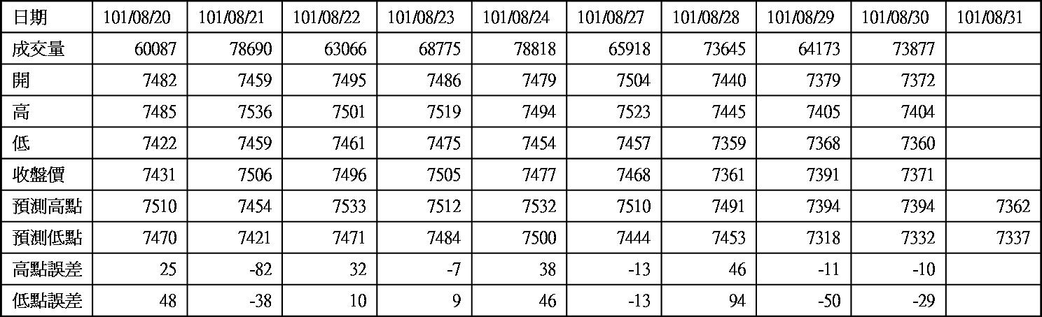 高低點振盪預測+/-誤差大於75點或與前日變化大表示進入盤整或新趨勢