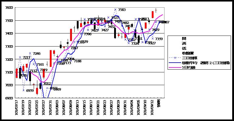 長線看法中空轉長空 外資現貨買超約50.7億 期貨未平倉量多單水位降至8100多口 大盤今日開高振盪收平 短線繼續受QE3預期影響 大盤短線高點有限 等QE的消息底定 多空才會重新表態 目前對後勢空頭的看法不變 手中多空對鎖單續抱 藍色虛線為指標 藍色實線為指標的移動平均線(週期2) 粉色實線為5(日,週,月)平均線 目前週線站上指標和5週均線 月線站上指標和5月均線 日線站上指標和5日均線 大盤日線 大盤週線 大盤月線 台股期貨未平倉 台指選擇權未平倉 三大法人現貨買賣超 大盤高低點振盪預測 高低點振盪預測+/-誤差大於75點或與前日變化大表示進入盤整或新趨勢