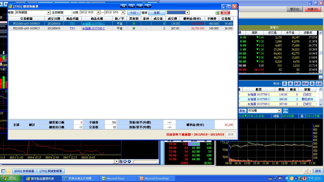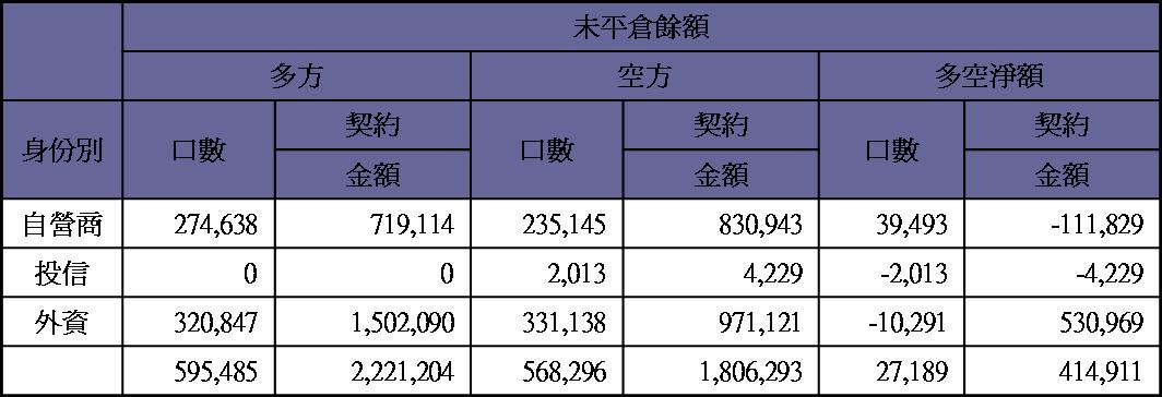長線看法中空轉長空 外資現貨小買約24.9億 期貨未平倉量多單水位急升至9300多口 大盤今日開低振盪小跌 期貨漲幅大於現貨 可能是結算前轉倉的結果 指數目前短線高點有限 手中買權出清 其餘賣權續抱 藍色虛線為指標 藍色實線為指標的移動平均線(週期2) 粉色實線為5(日,週,月)平均線 目前週線站上指標和5週均線 月線站上指標和5月均線 日線站上指標和5日均線 大盤日線 大盤週線 大盤月線 台股期貨未平倉 台指選擇權未平倉 三大法人現貨買賣超 大盤高低點振盪預測 高低點振盪預測+/-誤差大於75點或與前日變化大表示進入盤整或新趨勢 期貨對帳單 期貨沖銷明細 期貨庫存