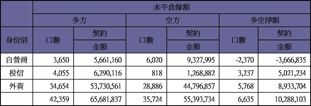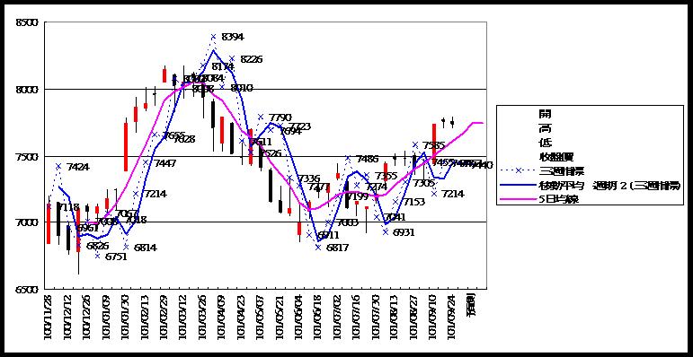 長線看法中空轉長空 外資現貨買超約41.7億 期貨未平倉量多單水位急降至5700多口 大盤今日開平高走低收低 短線獲利賣壓出籠 但還不致於大跌 行情可能會持續振盪到星期四摩台結算前後 手中多空對鎖單續抱 藍色虛線為指標 藍色實線為指標的移動平均線(週期2) 粉色實線為5(日,週,月)平均線 目前週線站上指標和5週均線 月線站上指標和5月均線 日線跌破指標和5日均線 大盤日線 大盤週線 大盤月線 台股期貨未平倉 台指選擇權未平倉 三大法人現貨買賣超 大盤高低點振盪預測 高低點振盪預測+/-誤差大於75點或與前日變化大表示進入盤整或新趨勢