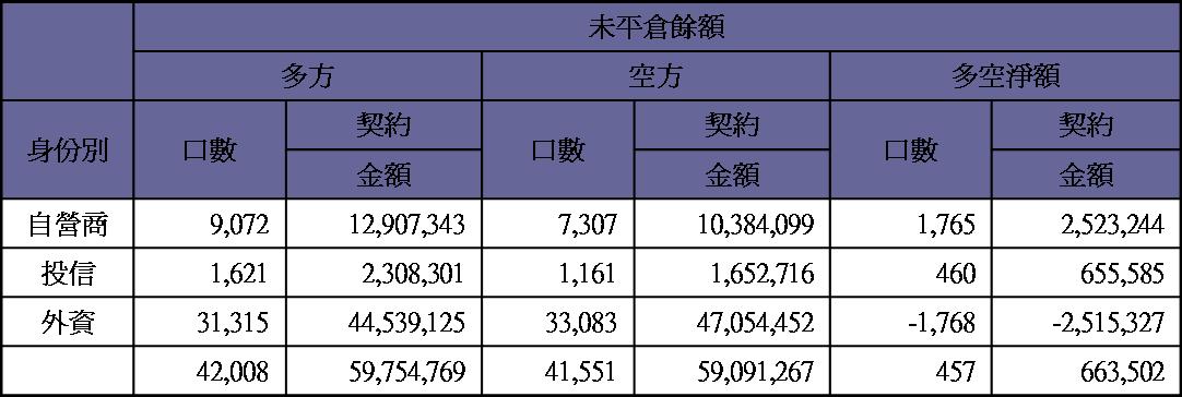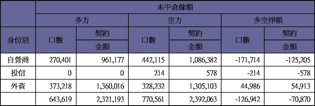 期貨未平倉量空單水位急降至1700多口
