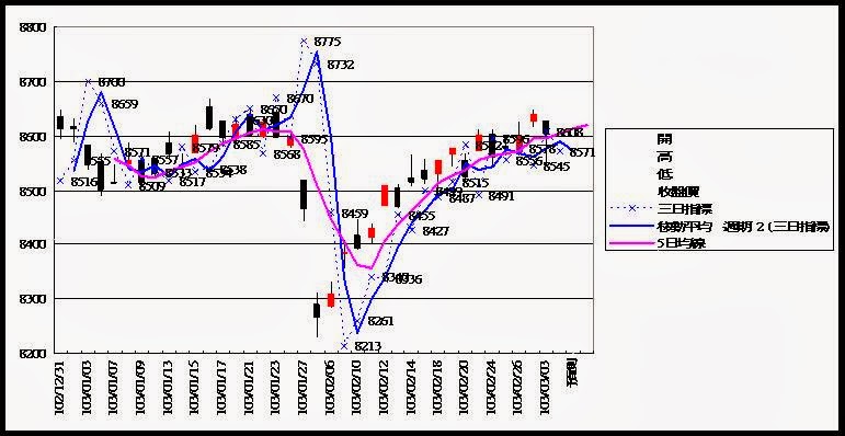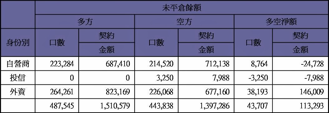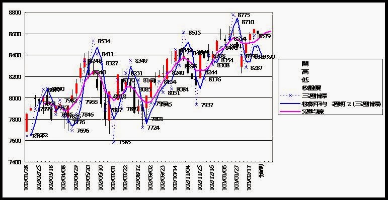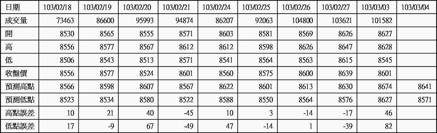 長線看法中空轉長空 外資現貨轉為賣超約7.1億 期貨未平倉量多單水位減為約12500多口 今天大盤開低後緩步拉抬尾盤收小跌 成交量維持在近千億附近 藍色虛線為指標 藍色實線為指標的移動平均線(週期2) 粉色實線為5(日,週,月)平均線 目前週線站上指標和5週均線 月線跌破指標但站上5月均線 日線跌破指標但站上5日均線 大盤日線 大盤週線 大盤月線 台股期貨未平倉 台指選擇權未平倉 三大法人現貨買賣超 大盤高低點振盪預測 高低點振盪預測+/-誤差大於75點或與前日變化大表示進入盤整或新趨勢