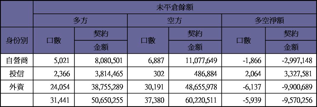 期貨未平倉量多單水位轉為空單約2000多口