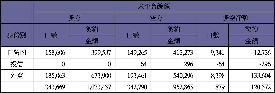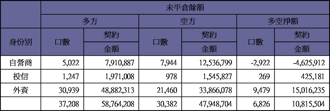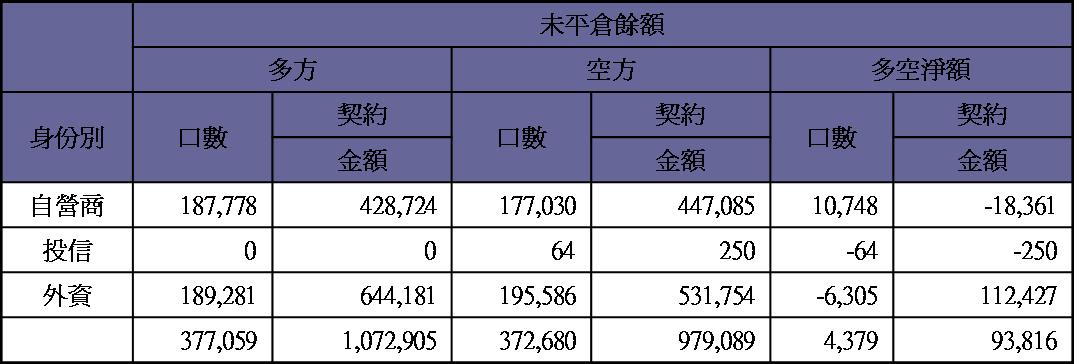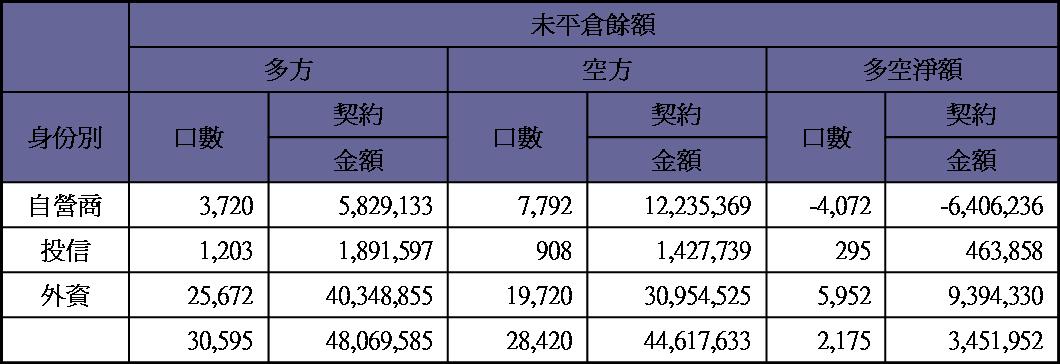 期貨未平倉量多單水位轉為空單約9100多口