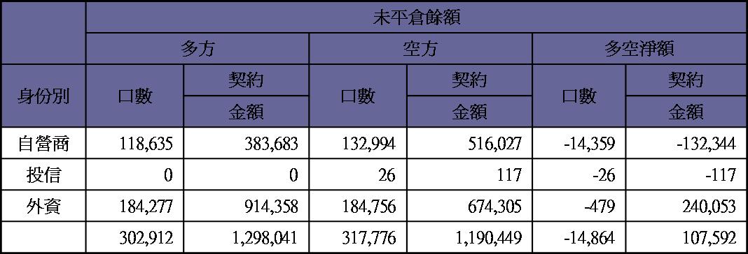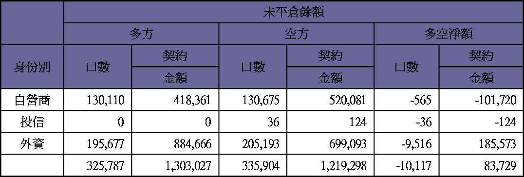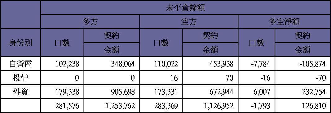 期貨未平倉量多單水位轉為空單約600多口