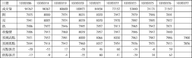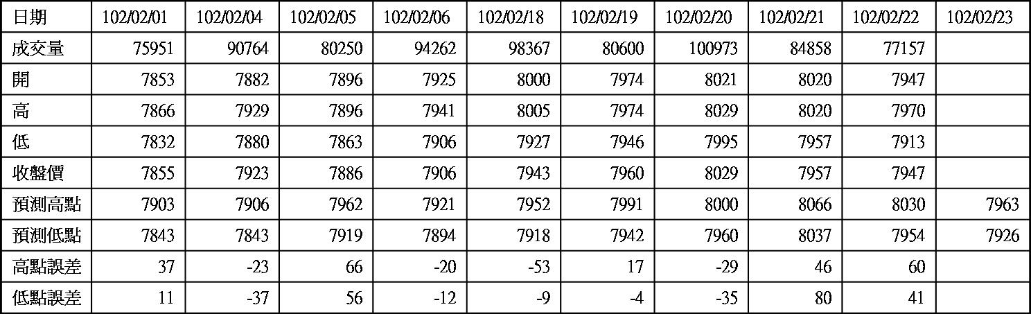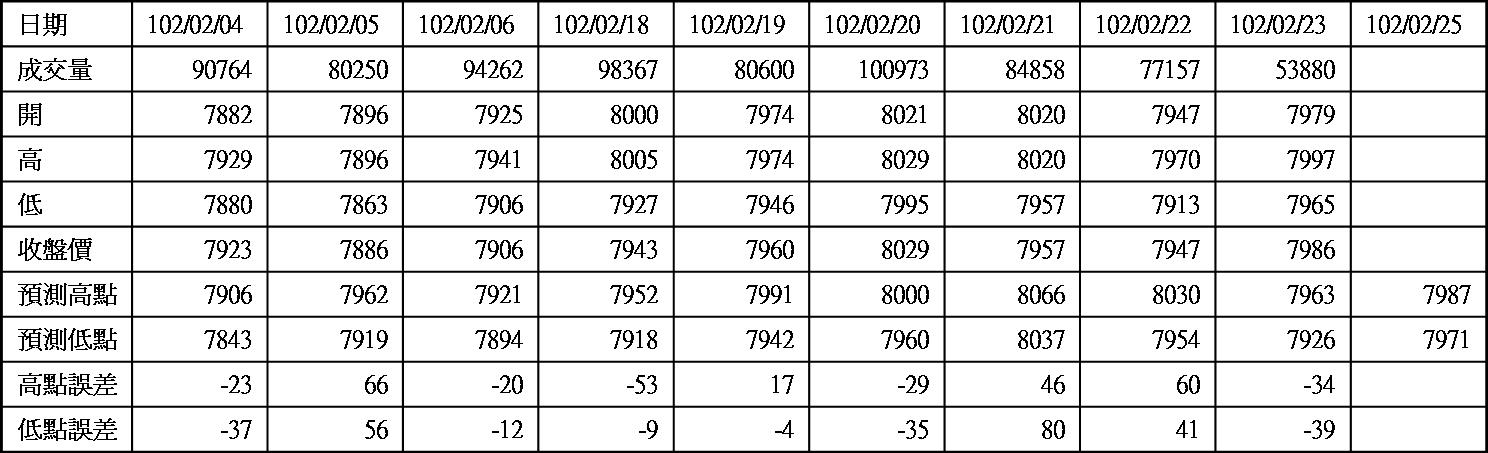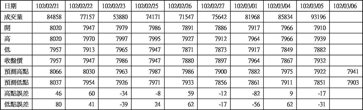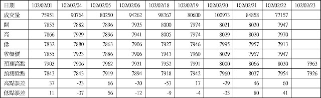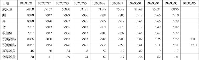 高低點振盪預測+/-誤差在大盤站上8000點後修正為85點