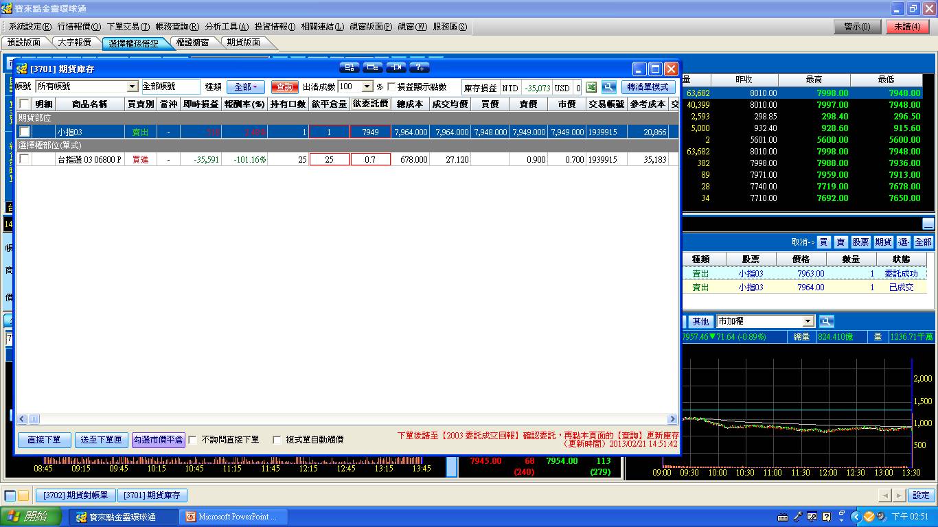 並賣出3月份7900賣權1口