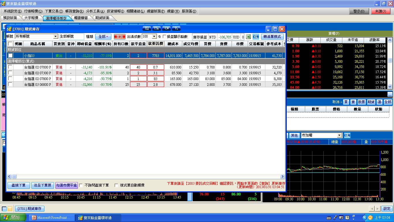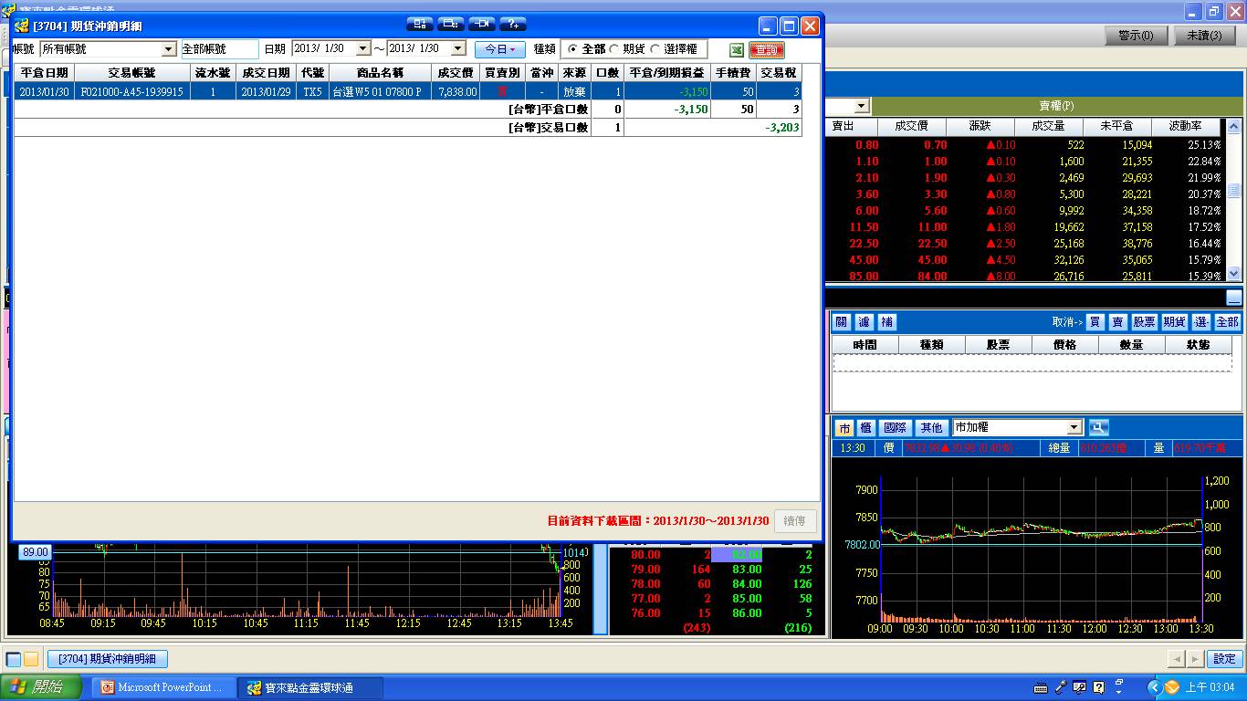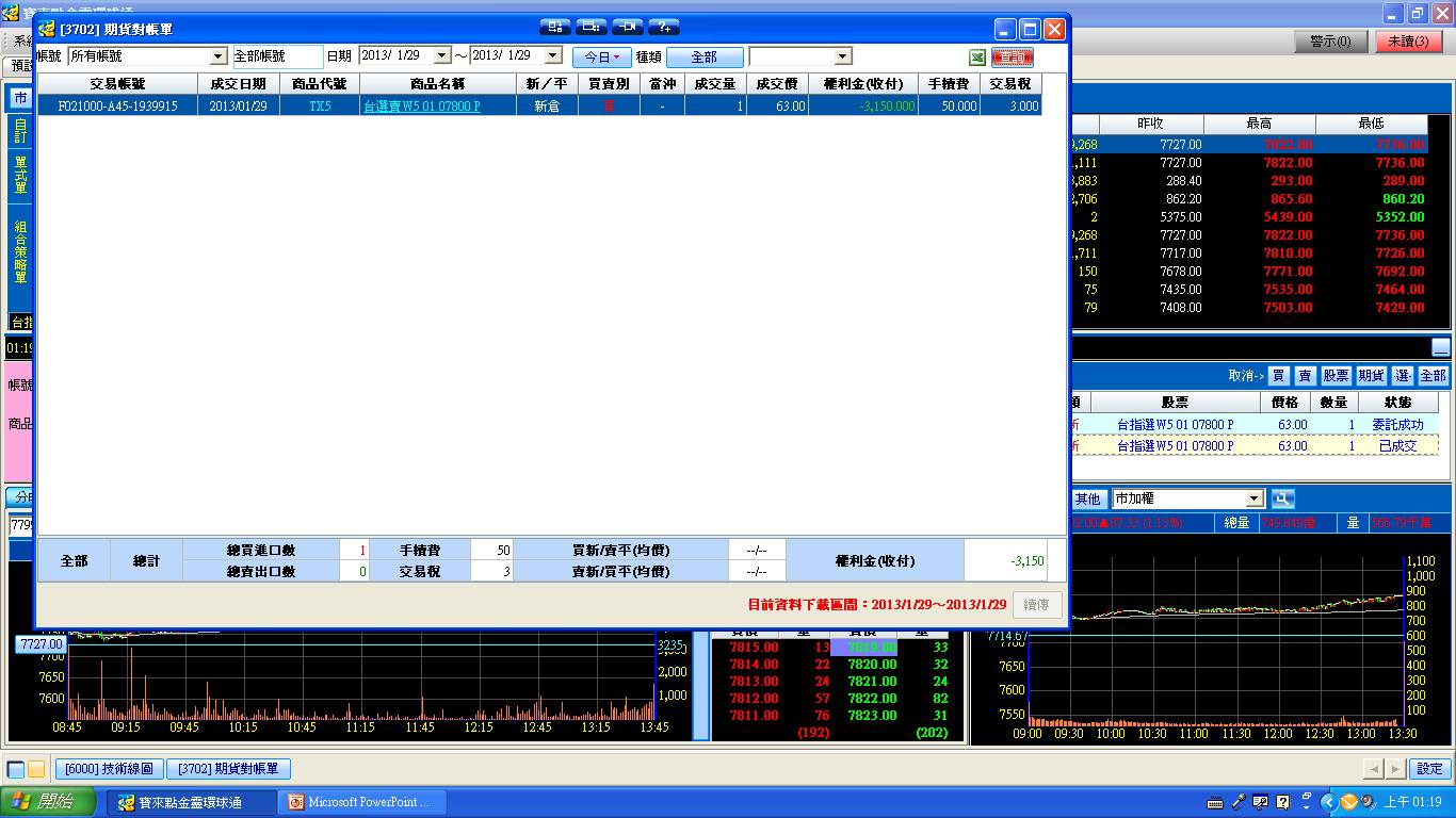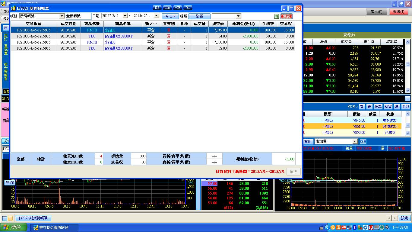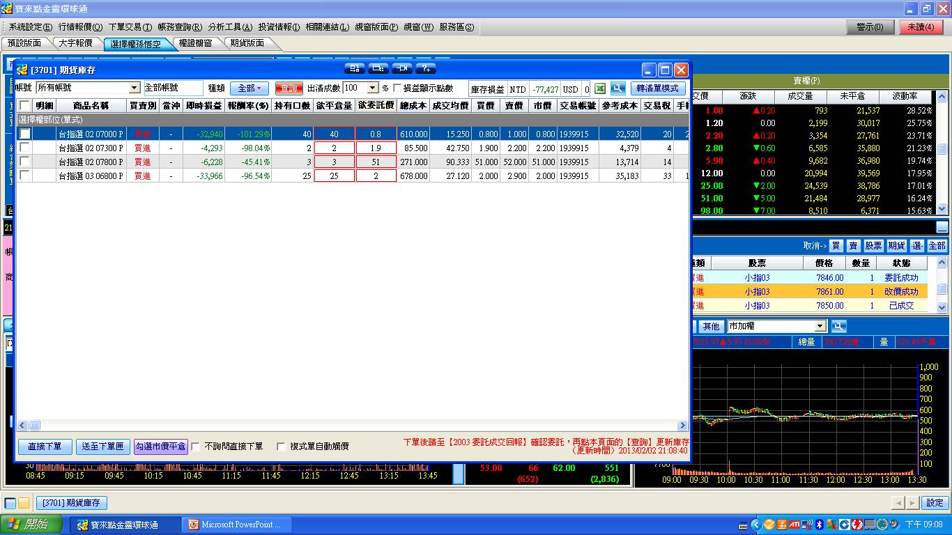 盤中當沖2月份7700賣權1口並平倉7800週選擇權賣權1口